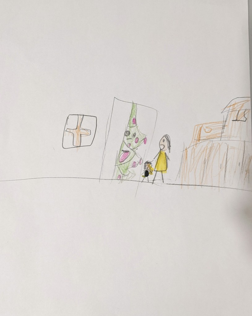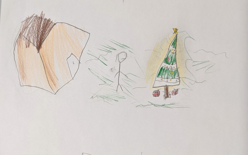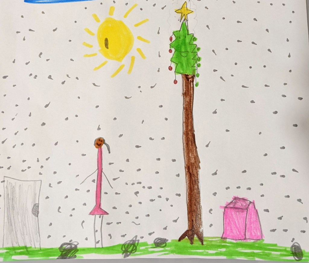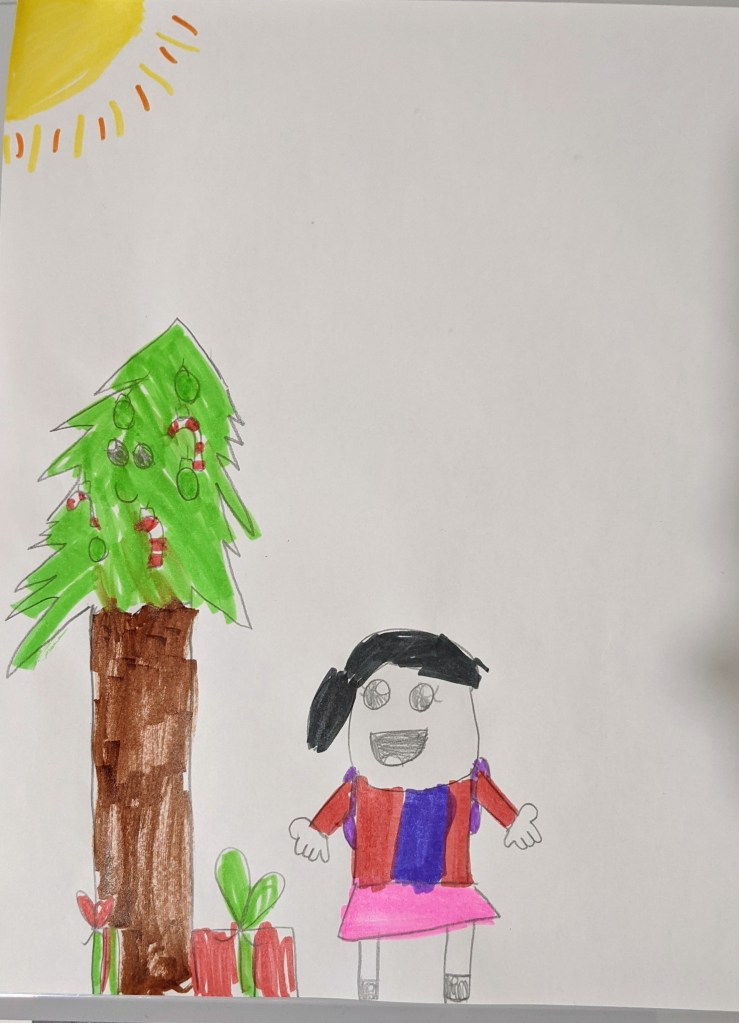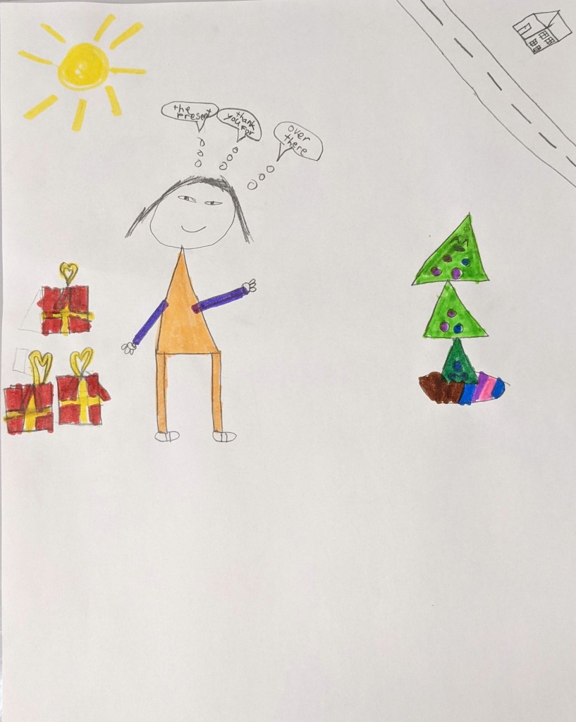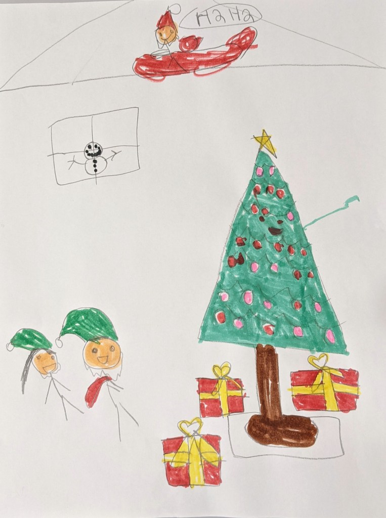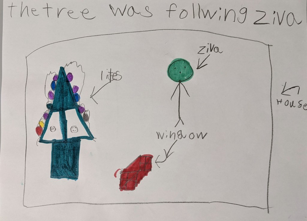 So, here’s the best thing that happened to me this week. A grade two teacher at a nearby school was doing a unit on different celebrations, and she showed her class the YouTube video of my story “Tree”. It’s about a young girl heading home for Hanukkah, but she is being followed by a Christmas tree. They loved it so much that they drew pictures of it! And I loved the pictures so much, I had to share them with you.